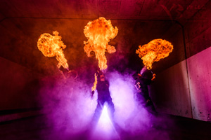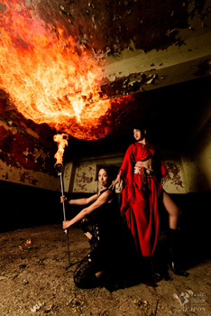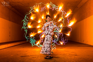 ◆残光写真 Zanko Photo![]() 「炎×光×モデル×撮影」で作り出す特殊撮影(残光写真) かぐづち-KAGUZUCHI-のショウステージで行っている ・ファイアーパフォーマンスでの圧倒的で原始的な炎と ・最新鋭のLEDやレーザーを駆使した極彩色のライトパフォーマンス ・さまざまな化学反応を駆使して生み出す魔術的な空間演出 「あらゆるひかりを使ったパフォーマンス」を一段進めて パフォーマンスとアートを融合させた結像を創るプロジェクト。 かぐづち-KAGUZUCHI-のステージは、元々絵描きだったイズミの思い描く様々な絵を パフォーマーと炎と舞台で表現し、空間に絵を描くことをイメージしてプロデュースを行っています。 ・多彩なショウを行うパフォーマーは色とりどりの絵の具 ・多種多様な起動と効果を描く道具は描画技法 ・舞台はキャンバス ・会場は額縁 ・一瞬を絵として切り取るカメラマンは筆 そこまでトータルで1枚の絵をつくりだす。アナログとデジタル、炎と電の融合ステージ。 その過程で。 炎×光×特殊効果の安全で美しい演出の仕方と、その絵を撮影するノウハウが蓄積されてきました。 曲がりなりにもパフォーマンス「アート」プロジェクトと銘打っているので アートっぽい事をしてみようという事から残光写真のアイディアは生まれました。 ![]() ・現実世界に直接干渉する特殊エフェクト 近年、AR(拡張現実)やフォトショップなどの画像編集ソフトの台頭で、 現実の世界(アナログ)で撮影した画像にモニター上(デジタル)で 特殊エフェクトを表示する技術は一定の進化を遂げてきました。 一方でプロジェクションマッピングやディラッドスクリーン(透明スクリーン)などを使って、 モニター上(デジタル)で創った特殊エフェクトを現実世界(アナログ)へ顕現させる試みも行われてきました。 かぐづち-KAGUZUCHI-のショウは現実世界で、人の肉眼で見る事のできる 特殊エフェクトを使ったパフォーマンスステージを行っています。 残光写真はアナログとデジタルの融合させたものを残すだけでなく 撮影した時の炎の音や臭い、熱、アナログの最たるもの「記憶」と、 その結果をデジタルな絵として記録する事で、大事な記憶を五感を揺さぶる高密度で残します。 結婚式や記念日、式典などの記録としてこの上なく上質な思い出となると考えています。 通常の炎を使った演出、粉塵燃焼を使った演出、コークスを使った演出、低温花火を使用した演出、 高温の金属粉を使用した演出等々、様々な炎熱系の演出に加えて、 LEDライトの演出にも、自由に空間に文字や画像を描画できる「グラフィックポイ」を初め、 空間を切り刻むレーザードラゴンスタッフなど、強力な演出がそろってきたので 炎と光を複合させた撮影も可能になってきました。 ![]() かぐづち-KAGUZUCHI- http://www.kaguzuchi.com/ Tweet ■ご質問について ・自分の撮影(個人・法人)に来てほしいのですが呼べますか? 呼べます。 特殊効果チームから、撮影カメラマン、場合によっては撮影する会場もご用意可能です。 ・危なくないですか? 10年以上、野外・屋内ステージで安全にショウを行ってきたノウハウと実績があります。 保険についても10億までの保険をご用意可能ですので、万一の時も安心です。 ![]() |
